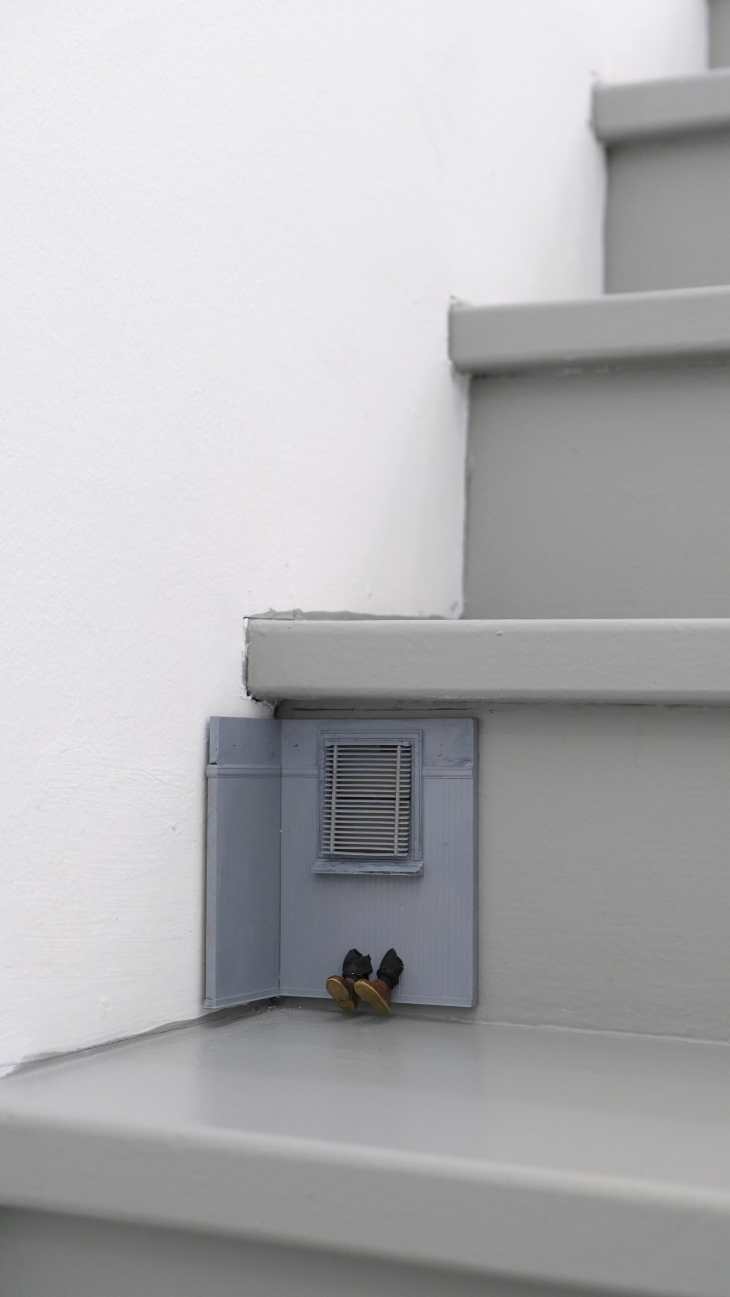 Sparked by the exasperation of his inconsiderate neighbours’ behaviours, the artist depicts how intrusive their actions are affecting him and his daily life. With a scale model of an apartment setting he had in his studio, he added legs from an action figure to illustrate how his neighbours have infiltrated and terrorise his private space.