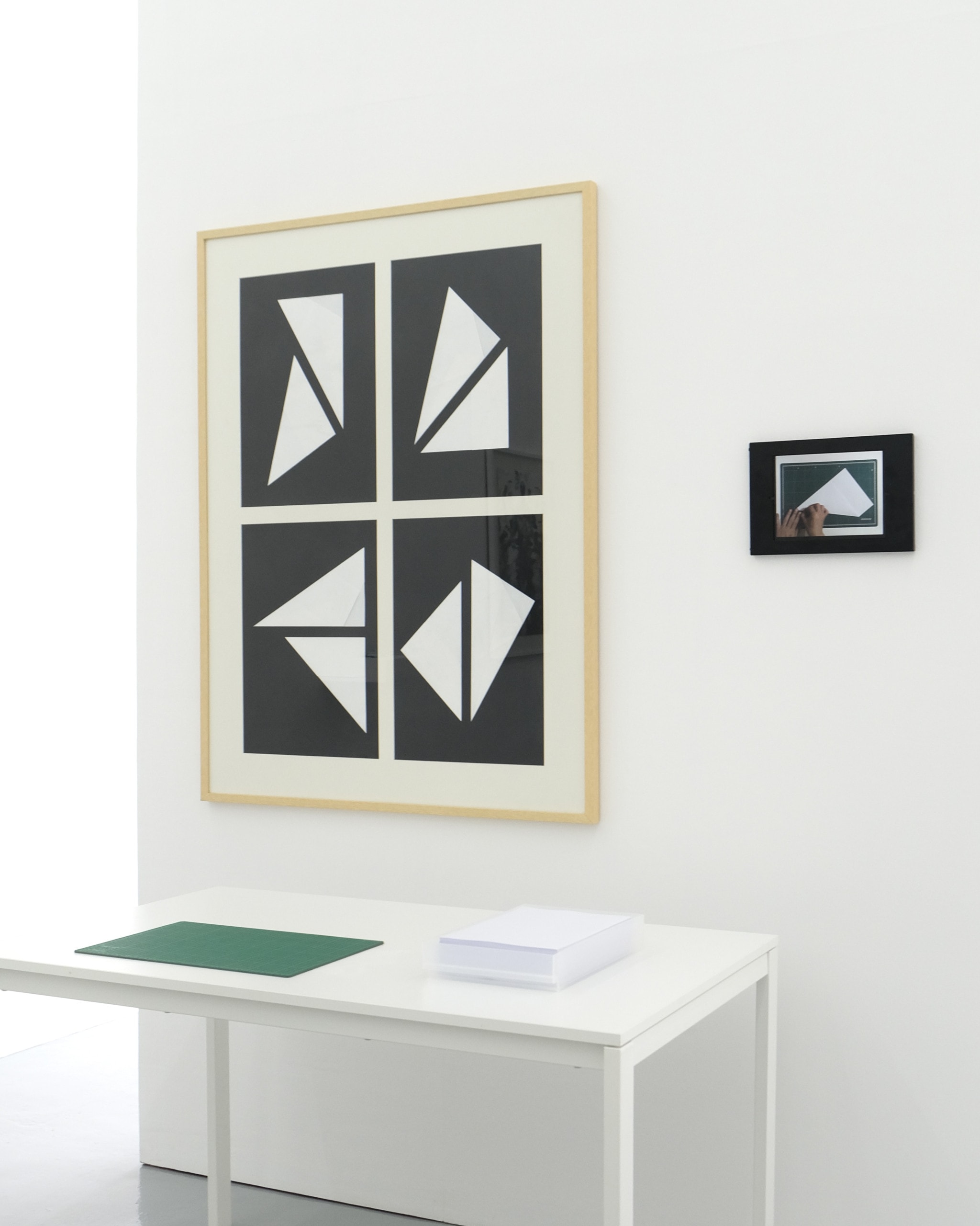 Composition plays off the set square, composed on four sheets of black A-sized paper (the ratio of A-sized paper is 1:1.414, known as the Silver Ratio) to elaborate the conceptual value of A-sized paper.