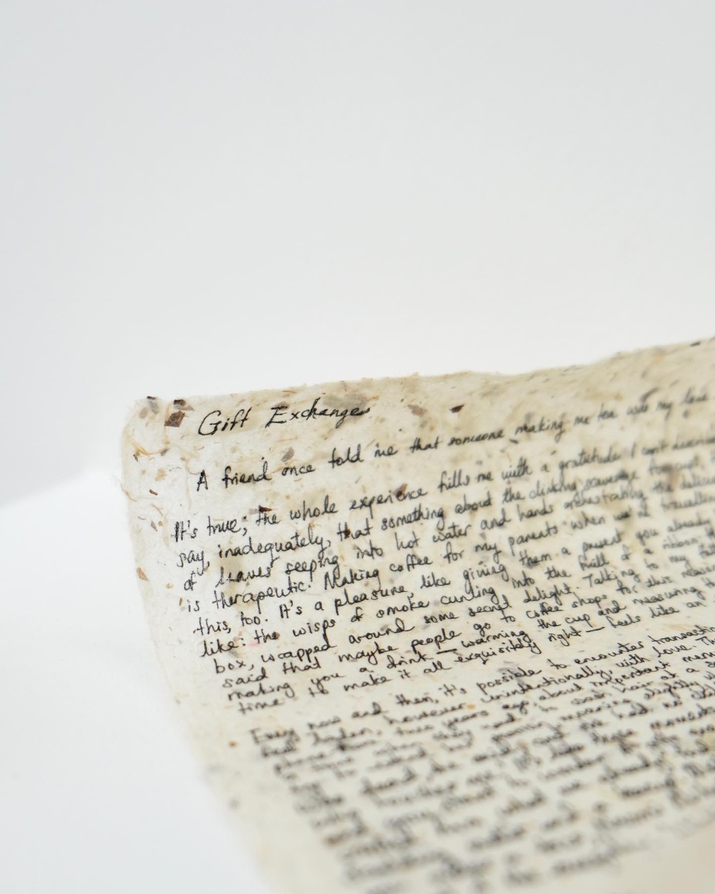 The artwork was curated with ink writings on a handmade Japanese paper, a long-treasured keepsake from the artist’s parents. The artwork encourages the audience to experience the act of gift exchange it by opening the scroll and engaging in the ritual of unwrapping a present. Once you have received the artist’s offering of gift exchange, you are to roll it back up for the next person to experience it. The interactive experience of the artwork is meant as a transcendence towards a feeling of anything but transactional.