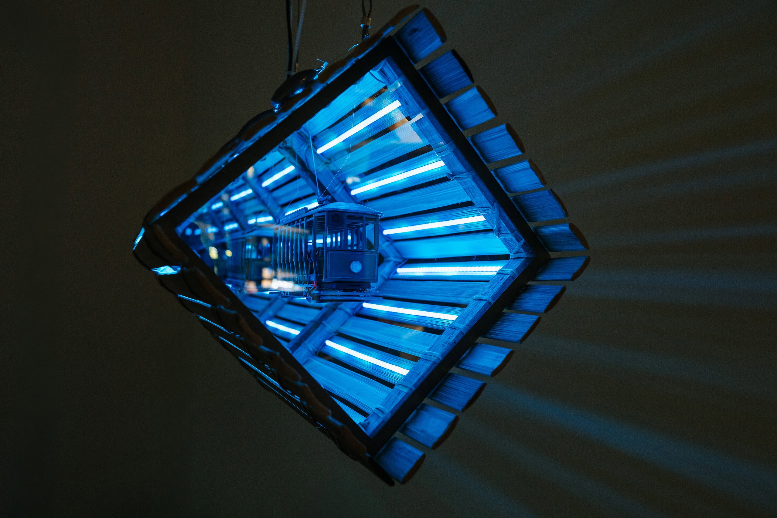 Hong Kong artist Sim Chan’s solo exhibition, The Infinite-land (Penang), presented at Blank Canvas in Malaysia, comprises three series: the 3D light sculpture In Endlessness; the light-painting installation series WindowScape, and the mobile light installation traversing the gallery space: the cable car series Wandering.