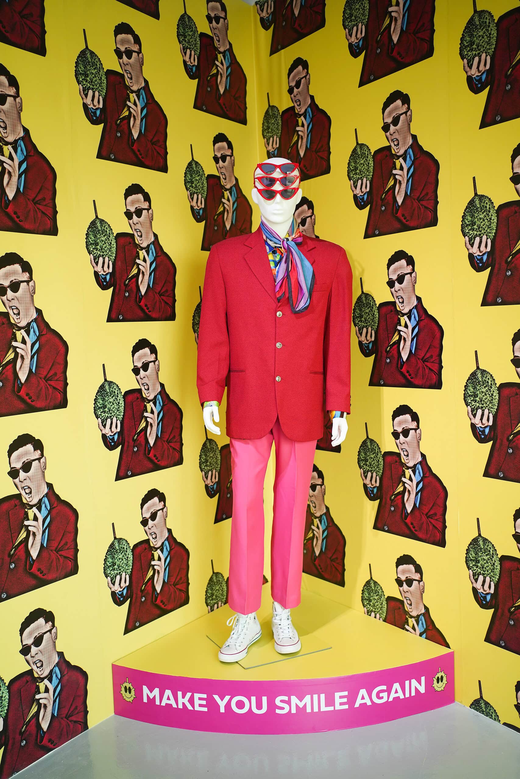 In November 2019, FAMEME opened the first durian-themed Instagram museum, the “Museum of Durian,” in Soho, New York. For the advertisement that was displayed on the largest LED billboard in Times Square, he donned this red outfit while holding up a durian. The advertisement also read: “Don’t Google Me, Just Follow Me.” FAMEME captured New York’s attention with this image, which marked the first milestone in transforming his family’s durian business into a trendy litestyle brand.