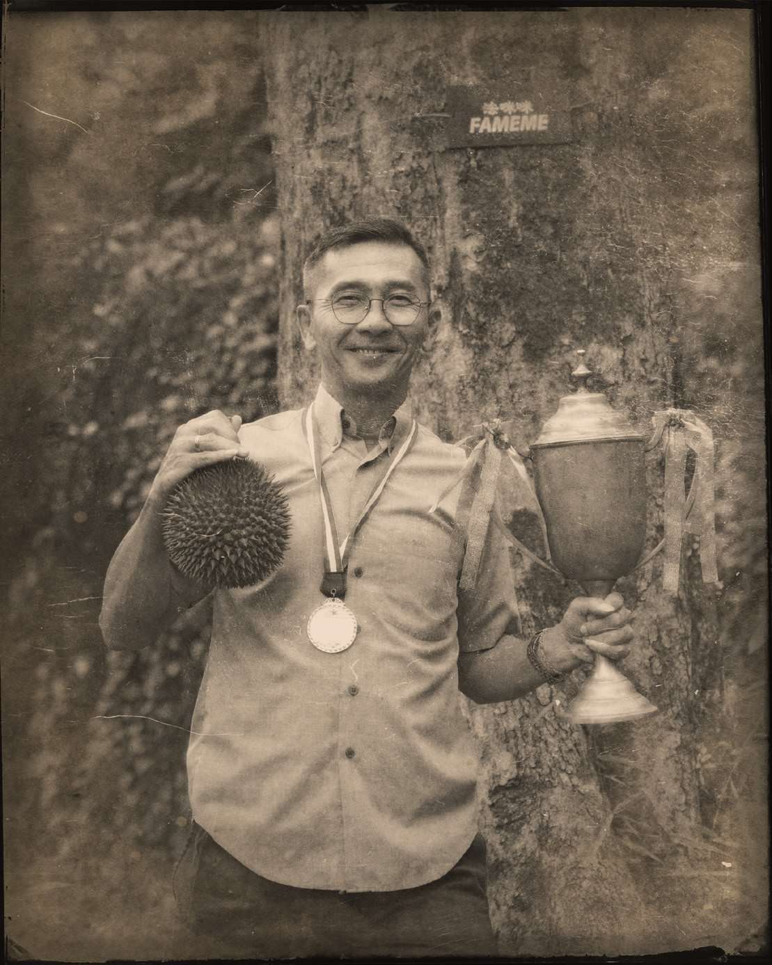 Penang is a durian kingdom. A rich, storied connection with the fruit has made the island one of the centers of durian cultivation in Malaysia, if not the world. At the heart of this durian empire is a family-run conglomerate, Durian King. FAMEME, heir to this empire, has led a fabulously colourful, nomadic life abroad as an entrepreneur and entertainer. He finally returned to the land of his birth in 2017, rejoining the family business. “The Return of Raja Durian” marks FAMEME’s homecoming, and an introduction to a figure otherwise little-known in Penang. The exhibition presents a collection of objects and documents that reveals the vicissitudes of his personal history, and his creative transformation of his family’s durian business. Artist and filmmaker Yu Cheng-Ta has produced a new documentary about FAMEME’s life, screening for the first time in this exhibition. The film offers an intimate look at his personal history, told through the gaze of a Taiwanese director. It delves behind his signature oversized sunglasses to trace the history of the Chinese immigrant community in Penang, and details FAMEME’s relationships with his family and struggles with self-identity, as he carves out his own durian empire.