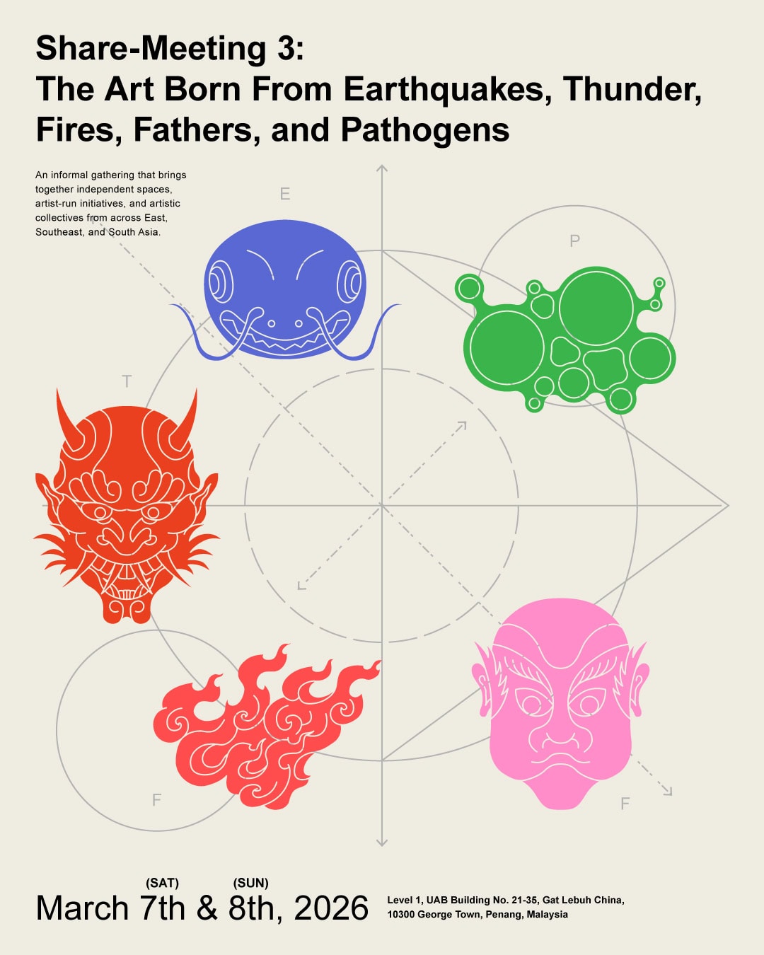 Through this meeting, participants will explore how non-public and non-institutional initiatives are sustained—examining organizational structures, budgeting, everyday operational decision-making, and artistic practices. Rather than pursuing a single, universal institutional model, Share-Meeting 3 seeks to create a space for sharing operational practices, struggles, and workarounds shaped by local conditions and by forces that are fundamentally beyond control, such as tectonic shifts, natural phenomena, disasters, patriarchal systems, and global-scale viruses.